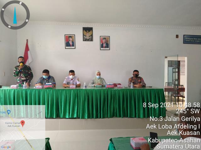 Asahan | Dalam rangka Acara Temu Ramah, Silaturahim Dan Perkenalan Camat Baru diwilayah binaan, Komandan Koramil (Danramil) 16/Pulau Rakyat jajaran Kodim 0208/Asahan Kapten Inf JH Munthe turut serta menghadiri Acara Temu Ramah, Silaturahim dan Perkenalan Camat Aek Kuasan yang Baru An. Bapak Jutawan Sinaga, kegiatan tersebut yang dilaksanakan bertempat di Aula Kantor Camat Aek Kuasan Kecamatan Aek Kuasan Kabupaten Asahan, Rabu (08/09/2021).