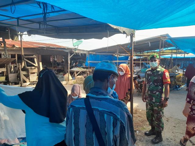 Dengan melaksanakan Pam Disiplin Mandiri Covid-19 di Pasar Baru Perdagangan dengan menghimbau kepada para pedagang dan pembeli agar selalu mencuci tangan dgn sabun, menggunakan masker dan menjaga jarak serta menghindari kerumunan guna mencegah penularan Covid-19 tepatnya di Pasar Baru. Pada kesempatan tersebut Babinsa Serka Paisal mengatakan, “bahwa selaku Babinsa kami tidak pernah henti-hentinya memberikan himbauan kepada para pedagang dan pengunjung pasar taluk kuantan supaya selalu menjaga jarak, jangan berkerumun, antri dengan tertib dan wajib menggunakan masker saat beraktivitas serta mencuci tangan, karena masih ada yang tidak disiplin” katanya. “Hal ini dilakukan bertujuan untuk mencegah penyebaran virus Covid-19, maka kita harus optimis bahwa kita siap melaksanakan kegiatan Penegakan Disiplin ini kepada masyarakat,” tambahnya kemudian.