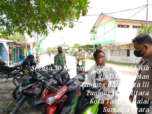 Tanjung Balai  |  Peran aktif aparat kewilayahan khususnya Babinsa dalam mengurangi angka penyebaran Covid-19 diwilayah binaannya sangat membawa dampak yang besar, terbukti dengan turut sertanya TNI dalam melakukan Serbuan Vaksinasi, menyampaikan himbauan dan ajakan pada warga untuk turut menyukseskan program Vaksinasi dengan ikut melaksanakan Vaksin, seperti yang dilakukan oleh Personel Bintara Pembina Desa (Babinsa) Koramil 09/Tanjung Balai jajaran Kodim 0208/Asahan Pelda Darwin Ops dan Bhabinkatibmas beserta 3 orang anggota Babinsa turun kewilayah binaan untuk melaksanakan kegiatan penghimbauan mengajak warga untuk laksanakan Vaksin yang belum melaksanakan Vaksin juga bersama dengan Kepling Bapak Amin Manik, Kepling Bapak Abdul Halim dan Tomas Bapak Suratman, kegiatan tersebut yang dilaksanakan bertempat di Jalan D.I. Panjaitan Kelurahan Tanjung Balai Kota lll Kecamatan Tanjung Balai Utara Kota Tanjung Balai, Selasa (30/11/2021).