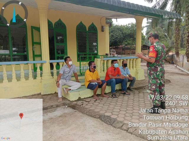 Asahan | Dalam kegiatannya ini, selain untuk menambah erat jalinan silaturahmi dengan warga guna memperkokoh kemanunggalan TNI dan Rakyat, juga sekaligus sebagai upaya aparat teritorial (Babinsa) dalam memelihara keamanan dan ketertiban di desa binaan. Seperti yang dilakukan oleh Personel Bintara Pembina Desa (Babinsa) Koramil 14/Bandar Pasir Mandoge jajaran Kodim 0208/Asahan Serda Joni Tanjung turun kewilayah binaan untuk melaksanakan kegiatan anjangsana serta dengan menghimbau dan mengajak warga binaan yang belum melaksanakan Vaksin agar segera melaksanakan Vaksin supaya terhindar dari dampak Virus Covid 19 dan mengingat kan warga agar tetap memakai masker apabila keluar Rumah serta menberikan himbauan kepada masyarakat agar tetap selalu menjaga kesehatan diri sendiri maupun lingkungan bersama dengan Bapak Sutardi, Bapak Muliyadi, Bapak Suriyono dan Bapak Sutrayudi, kegiatan tersebut yang dilaksanakan bertempat di Dusun ll Desa Tomuan Holbung Kecamatan Bandar Pasir Mandoge Kabupaten Asahan, Kamis (17/03/2022).