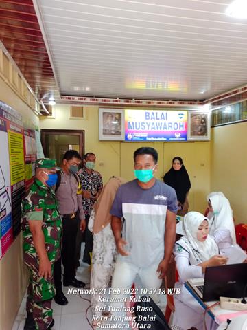 Tanjung Balai | Selain memberikan sosialisasi dan edukasi kepada warga terkait Vaksinasi, para Babinsa juga mengantar jemput warganya yang sudah lanjut usia (Lansia) untuk melaksanakan Vaksinasi. Hal tersebut terlihat saat salah satu yang dilakukan oleh Personel Bintara Pembina Desa (Babinsa) Koramil 09/Tanjung Balai jajaran Kodim 0208/Asahan Koptu Rial Irawan turun kewilayah binaan untuk melaksanakan kegiatan mengantar warga Lansia untuk melaksanakan kegiatan Vaksin di Polsek Tanjung Balai Utara, kegiatan tersebut juga turut serta dihadiri oleh Bapak Sopian Pohan Camat Tanjung Balai Utara, Iptu M. Tanjung Kapolsek Tanjung Balai Utara dan Bapak Agung Prayoga Kepling Tanjung Balai Kota lll, kegiatan tersebut yang dilaksanakan bertempat di Jalan Kramat Agis Kelurahan Tanjung Balai Kota lV Kecamatan Tanjung Balai Utara Kota Tanjung Balai, Senin (21/02/2022).