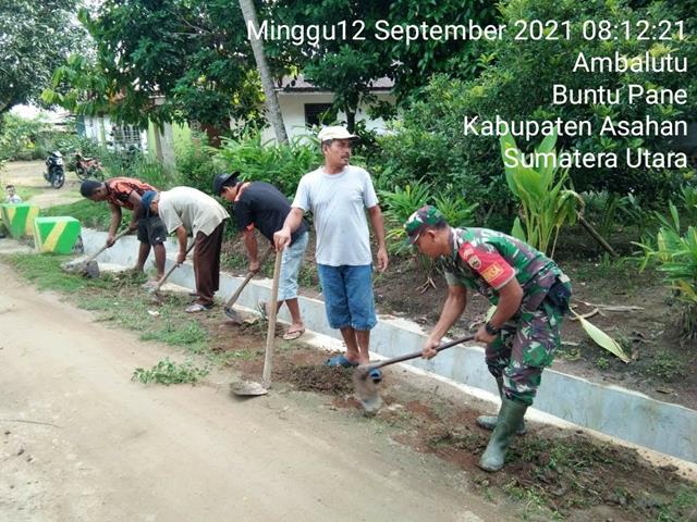 Asahan  |  Agar tidak terjadi penggenangan air hujan diwilayah desa binaan, dalam hal ini Personel Bintara Pembina Desa (Babinsa) Koramil-13/Buntu Pane jajaran Kodim 0208/Asahan Serda Juliono turun kewilayah binaan untuk melaksanakan kegiatan Gotong Royong pembenahan parit jalan agar tidak terjadi penggenangan air hujan, bersama dengan Kades Ambalutu Bapak Heri Kusmiadi dan Kadus serta Masyarakat Ambalutu, kegiatan tersebut yang dilaksanakan bertempat di Desa Ambalutu Kecamatan Buntu Pane Kabupaten Asahan, Minggu (12/09/2021).