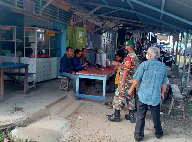 Simalungun | Guna mencegah penyebaran virus Covid-19 yang semakin berkembang, para pedagang dan pembeli merasa senang dengan adanya himbauan dari Babinsa, guna untuk memutus mata rantai penyebaran Virus Covid 19 di wilayah Binaan, dalam hal ini seperti yang dilakukan oleh Personel Bintara Pembina Desa (Babinsa) Koramil 17/Sidamanik jajaran Kodim 0207/Simalungun Serda Ahmad Nirwan turut serta pengawasan protokol Covid-19 kepada masyarakat dengan memberikan pemahaman New Normal, Pam Disiplin Mandiri Covid-19 di Pasar Tradisional dengan menghimbau kepada para pedagang dan pembeli agar selalu mencuci tangan dengan sabun, menggunakan masker, menjaga jarak dan menghindari kerumunan serta mengurangi mobilitas guna mencegah penularan Covid-19, dalam pelaksanaan kegiatan tersebut yang bertempat di Warung Pasar Tradisional tepatnya di Desa Sarimatondang Kecamatan Sidamanik Kabupaten Simalungun, Senin (14/02/2022).
