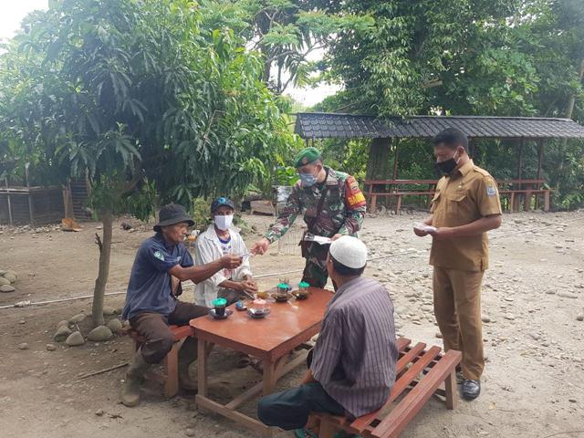 “Serta tetap melakukan pola hidup sehat dimasa penerapan PPKM berbasis mikro saat ini,” terang Babinsa Koramil Sertu Betah Eko  yang tampak selalu berdampingan dengan kepala desa dan Bhabinkamtibmas disela kegiatan hari ini.