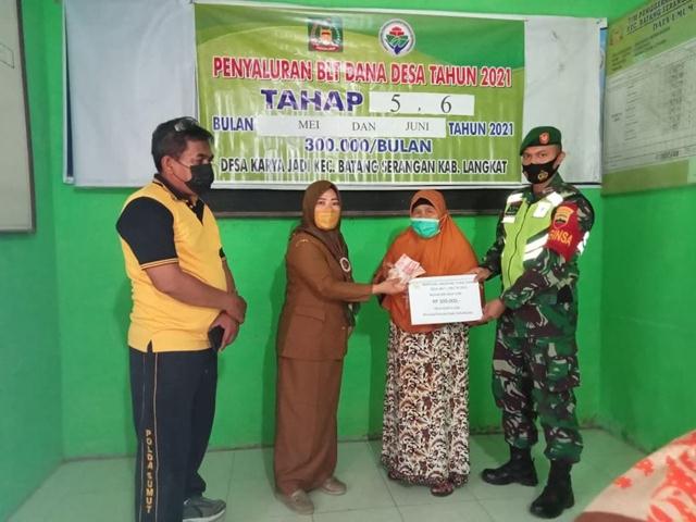Padang Tualang – Babinsa Koramil 10/Padang tualang Kopda Siswa pamuja menghadiri kegaiatan penyaluran Blt dd sebanyak 2 tahap kepada 29 warga terdampak covid 19 sebesar Rp 600.000/kk Bertempat di kantor desa Dusun Bamban Desa Karya jadi Kecamatan Batang serangan Kab. Langkat, Rabu ( 15/09/2021).