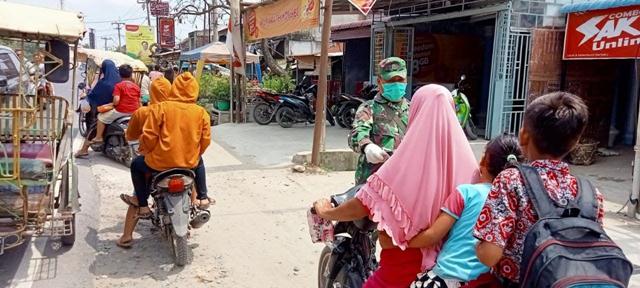 Dalam kegiatan tersebut anggota Koramil memberikan himbauan dan teguran kepada masyarakat untuk tetap mematuhi Protokol Kesehatan dengan selalu memakai masker dan menghindari kerumunan saat beraktivitas di pasar sa,at berjualan maupun berbelanja , Dalam kesempatan tersebut petugas juga membagikan masker secara gratis kepada warga yang kedapatan tidak memakai masker.