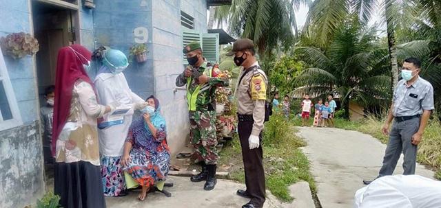 Babinsa Koramil 14/Besitang  bersama  Bhabinkamtibmas Kelurahan  Pekan Besitang Dampingi Petugas Medis Laksanakan Tracing