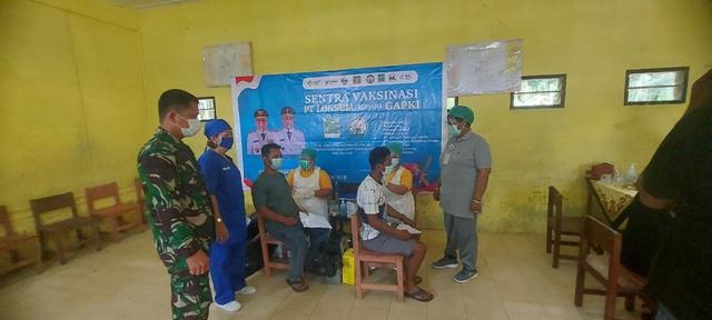 Babinsa Serma Harry Anggota Koramil 06/Bahorok  Dim 0203/Langkat Melaksanakan Pendampingan Vaksinasi Tahap II Di PT Lonsum
