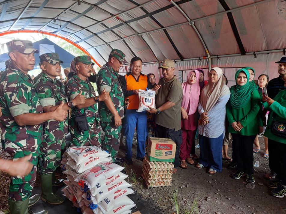 Rangkaian kegiatan kunjungan Dandim 0203/Langkat beserta rombongan di Koramil 14/ Besitang dan desa sekoci, di laksanakan pemberian sembako secara simbolis kepada masyarakat yang terdampak banjir di posko penampungan Desa Sekoci
