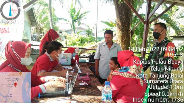 Tanjung Balai | Dalam mengayomi masyarakat maka, Sertu Hamsar Pasaribu selaku Babinsa Koramil 08/Pulau Buaya yang turut melaksanakan pendampingan Vaksinasi di Mapolsek Teluk Nibung diutamakan untuk anak-anak dan Lansia juga Masyarakat Umum lainya dengan dosis 1, 2 dan 3 Boster agar mencapai Target maksimum. Kegiatan tersebut yang dilaksanakan bertempat di Lingkungan di Teluk Nibung, Kota Tanjung Balai, Jumat (18/02/2022).