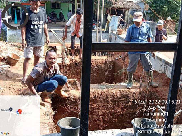 Asahan | Tingkatkan silaturrahmi bersama warga desa binaannya, dalam hal ini seperti yang dilakukan oleh Personel Bintara Pembina Desa (Babinsa) Koramil 15/Bandar Pulau jajaran Kodim 0208/Asahan Sertu Herdianto turun kewilayah binaan untuk melaksanakan kegiatan Gotong-royong pengecoran pondasi Pembangunan Menara Mesjid Syuhada Desa Rahuning 1 Bersama Masyarakat, Semoga dengan Kegiatan ini, Menambahkan Kekompakan serta Kebersamaan TNI dan Masyarakat, kegiatan ini juga turut serta dihadiri oleh, Kades Rahuning Bapak Kesuma Tresno SP, Tokoh Agama H. Safi’I, seluruh Kadus dan Masyarakat Desa Rahuning l, Rabu (16/03/2022).
