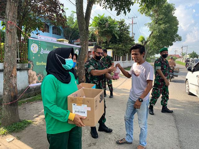 Pembagian  paket  takjil untuk berbuka puasa ini mendapat sambutan antusias dari setiap warga dan pengguna jalan yang melintas di depan Markas Korem 022/PT tepatnya di Simpang Rambung Merah.