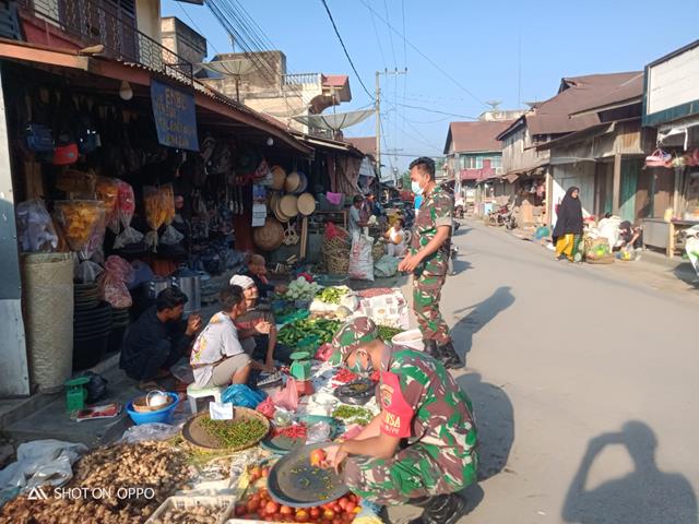 Asahan | Guna untuk memutus mata rantai penyebaran Virus Covid 19 di wilayah Binaan. Dalam hal ini Personel Bintara Pembina Desa (Babinsa) Koramil 16/Pulau Rakyat jajaran Kodim 0208/Asahan Sertu M. Mahdian dan Kopda Kadir A. Razak turun kewilayah desa binaan dengan melaksanakan Komunikasi Sosial (Komsos) dalam rangka untuk memeberikan himbauan kepada warga binaan tentang pentingnya mematuhi Disiplin Protokol Kesehatan serta pentingnya memakai Masker untuk menghindari penyebaran Covid-19 sekaligus memberikan himbauan kepada Pedagang agar selalu mematuhi anjuran Pemerintah yaitu mematuhi Protokol Kesehatan guna mempercepat dan memutus mata rantai penyebaran pandemi Virus Corona, kegiatan tersebut yang dilaksanakan bersama dengan Bapak Wawan, Bapak Hendra dan Ibu Siti Aminah dengan Pedagang diwilayah Koramil 16/Pulau Rakyat, Minggu (16/01/2022).