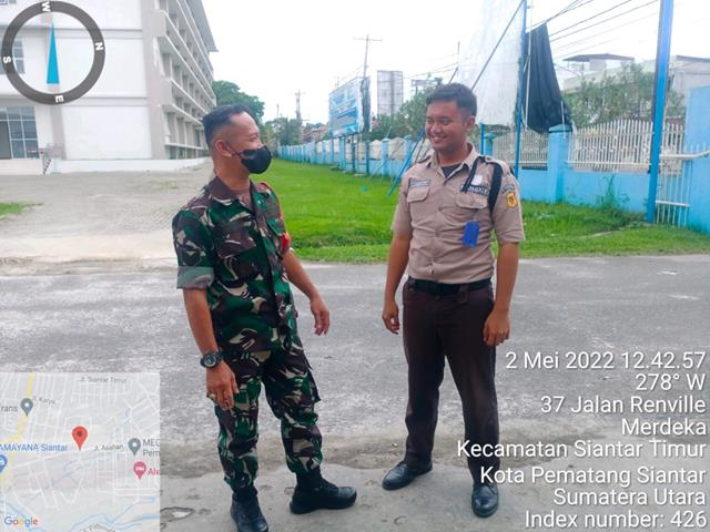 Pematang Siantar  |  Guna untuk memutus mata rantai penyebaran Virus Covid 19 di wilayah Binaan, dalam hal ini seperti yang dilakukan oleh Personel Bintara Pembina Desa (Babinsa) Koramil 02/Siantar Utara jajaran Kodim 0207/Simalungun Serka B.Panjaitan turut serta melaksanakan Pam ibadah shalat idul Fitri serta pengawasan protokol Covid-19 kepada masyarakat dengan memberikan Masker Serta memberikan pemahaman New Normal yaitu menggunakan masker setiap keluar rumah, cuci tangan pakai sabun bersama personil Polsek Siantar timur dan petugas gugus pemko pematang Siantar, menjaga jarak, kegiatan terebut yang dilaksanakan bertempat di Gedung SMA 4 Jalan Sutomo Kelurahan Pahlawan Kecamatan Siantar Utara Kota Pematang SIantar, Senin (02/05/2022).