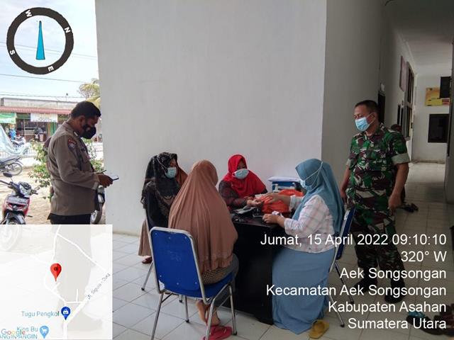 Asahan  |  Guna melancarkan dan mengamankan selama pelaksanaan pemberian vaksin Covid-19 tersebut Babinsa melakukan pendampingan dalam kegiatan tersebut, dalam hal ini Personel Bintara Pembina Desa (Babinsa) Koramil 15/Bandar Pulau jajaran Kodim 0208/Asahan Sertu Eddy Admojo turun kewilayah binaan untuk turut serta melaksanakan kegiatan monitoring pelaksanaan Vaksinasi tahap ke II dan Boster kepada warga masyarakat diwilayah binaan bersama dengan Tim Vaksinasi Puskesmas Aeik Songsongan dan Bhabinkamtibmas Polsek Bandar Pulau, kegiatan tersebut yang dilaksanakan bertempat di Puskesmas Aek Songsongan Kecamatan Aek Songsongan Kabupaten Asahan, Jumat (15/04/2022).