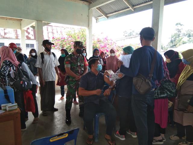 Dalam kesempatan tersebut para Babinsa Praka Muiswanto di wilayah memang sering terlibat dalam pendampingan pelaksanaan vaksinasi Covid-19, kegiatan pendampingan bertujuan untuk memberikan rasa nyaman dan aman kepada masyarakat yang akan mendapatkan suntikan vaksinasi, dalam hal ini untuk Proses pelaksanaan : Meja 1 Pendaftaran, Meja 2 Screning/ Riwayat Penyakit, Meja 3 Penyuntikan Vaksin dan Meja 4 Pencatatan.
