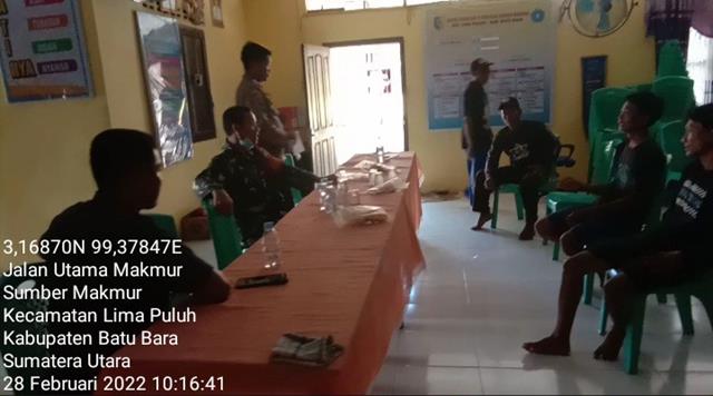 Batu Bara | Dalam rangka untuk menjaga silaturahmi dengan mitra kerja diwilayah binaan, dalam hal ini seperti yang dilakukan oleh Personel bintara Pembina Desa (Babinsa) Koramil 03/Lima Puluh jajaran Kodim 0208/Asahan Serma Suhardi turun kewilayah desa binaan untuk turut serta melaksanakan kegiatan Komunikasi Sosial (Komsos) bersma dengan Kepala Desa, Babinkamtibnas, Para Kadus, Polmas dan para Pemuda dalam rangka untuk membahas tentang penyelesaian masalah perkelahian sesama pemuda, kedepannya biar desa semangkin aman dan tenang serta agar dapat mengetahui tentang permasalahan dan kondisi sosial di tengah masyarakat dan meningkatkan hubungan yang Harmonis antara Babinsa dengan masyarakat bersama dengan Kepala Desa Bapak Aprianto, Babinkamtibnas Brigadir Irsan Lubis, Para Kadus dan Polmas S Makmur, kegiatan tersebut yang dilaksanakan bertempat di Aula Kantor Desa Sumber Makmur Kecamatan Lima Puluh Kabupaten Batu Bara, Selasa (01/03/2022).