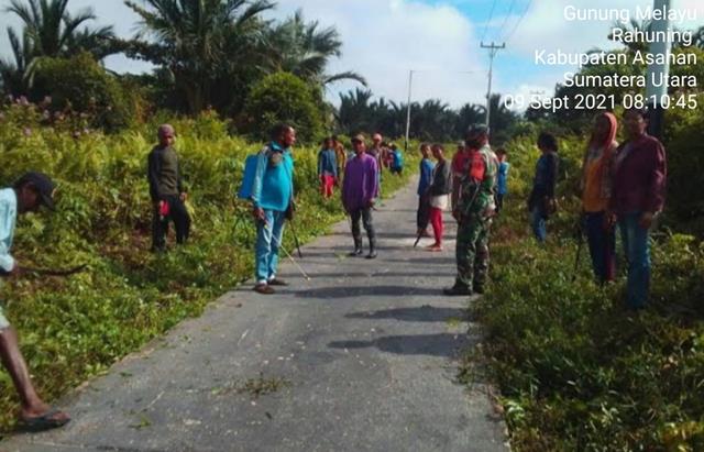 Asahan | Pembersihan sarana jalan umum ini supaya kondisi jalan lebih rapi, sehingga warga sekitar dan para tamu dari luar daerah yang sering datang melintas ke lokasi ini lebih nyaman, seperti yang dilakukan oleh Personel Bintara Pembina Desa (Babinsa) Koramil 15/Bandar Pulau jajaran Kodim 0208/Asahan Sertu Panji Satrio Pramana turun kewilayah binaan untuk turut serta melaksanakan kegiatan Gotong Royong bersama Masyarakat diwilayah binaan dalam rangka agar di Desa lingkungan tetap bersih dan tertata rapi, kegiatan tersebut yang dilaksanakan bertempat di Dusun 1 Desa Perk Gunung Melayu kecamatan Rahuning Kabupaten Asahan, Kamis (09/09/2021).