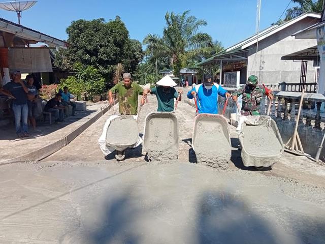 Bersama Dengan Masyarakat Binaan Personel Jajaran Kodim 0207/Simalungun Laksanakan Pembangunan Jalan Rabat Beton