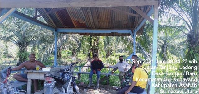 Asahan | Agar terjalinnya hubungan yang baik antara Babinsa dan warga binaan, kegiatan komunikasi sosial ini merupakan satu Kemampuan dari Lima Kemampuan Pembinaan Teritorial yang wajib di kuasai oleh seluruh Personel Babinsa umumnya. Seperti yang dilakukan oleh Personel Bintara Pembina Desa Koramil 10/Sei Kepayang jajaran Kodim 0208/Asahan Serma Supriono turun kewilayah desa binaan untuk melaksanakan Komunikasi Sosial (Komsos) bersama warga masyarakat PT. CIL yang sedang berbincang bincang dengan warga, membicarakan tentang perkembangan situasi dan kondisi perekonomian yang semakin sulit, juga untuk keamanan wilayah Desa, kegiatan tersebut dalam rangka untuk mempererat silaturrahmi di desa binaan, kegiatan tersebut yang dilaksanakan bertempat di Desa Bangun Baru Kecamatan Sei Kepayang Kabupaten Asahan, Jumat (17/09/2021).