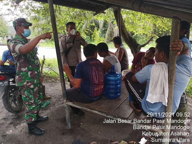 Asahan | Dalam rangka untuk menjaga silaturahmi dengan mitra kerja diwilayah binaan, maka dari itu Personel bintara Pembina Desa (Babinsa) Koramil 14/Bandar Pasir Mandoge jajaran Kodim 0208/Asahan Serda Sudarman turun kewilayah desa binaan untuk turut serta melaksanakan kegiatan Komunikasi Sosial (Komsos) bersma dengan mitra karib tentang meningkatkan keamanan di wilayah kita dengan membentuk poskamling, kegiatan ini juga di ikuti oleh Babinkamtibmas Aiptu Eben Simorangkir, Bapak Nurhadi, Bapak Parulihan Nasutin, Bapak Paujan, Bapak Selamet dan Bapak Nurman Manurung, hal ini juga untuk memberikan himbauan agar selalu tetap menjaga kesehatan diri dan lingkungan, kegiatan tersebut yang dilaksanakan bertempat di Dusun lV Desa Bandar Pasir Mandoge Kecamatan Bandar Pasir Mandoge Kabupaten Asahan, Senin (29/11/2021).