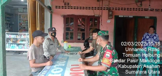 Asahan | Agar terjalinnya hubungan yang baik antara Babinsa dan warga binaan, kegiatan komunikasi sosial ini merupakan satu Kemampuan dari Lima Kemampuan Pembinaan Teritorial yang wajib di kuasai oleh seluruh Personel Babinsa umumnya, dalam hal ini seperti yang dilakukan oleh Personel Bintara Pembina Desa Koramil 14/Bandar Pasir Mandoge jajaran Kodim 0208/Asahan Serda Joni Tanjung turun kewilayah desa binaan untuk melaksanakan Komunikasi Sosial (Komsos) bersama Mitra Karib dan warga masyarakat binaan sekaligus memberikan himbauan dan mengajak Mitra Karib untuk menghimbau Masyarakat agar ikut Vaksin serta tetap menggunakan Masker dan mematuhi Protokol Kesehatan yang sedang berbincang bincang dengan warga membicarakan tentang perkembangan situasi dan kondisi perekonomian yang semakin sulit, juga untuk keamanan wilayah Desa, kegiatan tersebut dalam rangka untuk mempererat silaturrahmi di desa binaan bersama dengan Babinkamtibmas Aipda Jui Manurung, Bapak Antoni Sirait dan Bapak Rianto, kegiatan tersebut yang dilaksanakan bertempat di Dusun ll Desa Tomuan Holbung Kecamatan Bandar Pasir Mandoge Kabupaten Asahan, Rabu (02/03/2022).