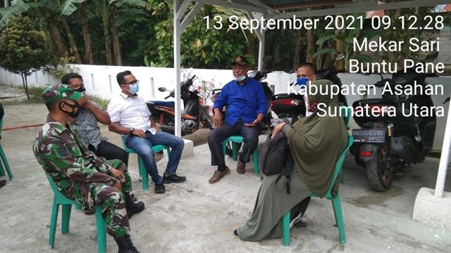 Asahan  |  Dalam rangka meningkatkan hubungan silaturahmi dan kerja sama bersama aparat Desa, Personel Bintara Pembina Desa (Babinsa) Koramil 13/Buntu Pane jajaran Kodim 0208/Asahan Serka Susastra turun kewilayah desa binaan untuk melaksanakan kegiatan Komunikasi Sosial (Komsos) dengan Perangkat Desa Mekar Sari dan Tokoh masyarakat Desa Mekar Sari membicarakan Gotong Royong pembuatan saluran pembuangan air agar di saat hujan datang tidak menggenang air bersama dengan Sekdes Mekar Sari Bapak Ivan Sagita, Kadus Dusun 3 Bapak Andi dan Tokoh Masyarakat Bapak Zul Amri dan masyarakat Dusun 3, kegiatan tersebut yang dilaksanakan bertempat di Dusun 3 Desa Mekar Sari  Kecamatan Buntu Pane Kabupaten Asahan, Senin (13/09/2021).