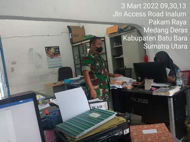 Asahan  |  Dalam pelaksanaan komsos tersebut Babinsa dengan meberikan himbauan kepada warga sekitar agar lebih aktif menjaga lingkungan desa, pasalnya dengan menjaga kebersihan lingkungan dengan cara tidak mencampakkan sampah sembarangan dan dapat menciptakan kawasan yang sehat bagi masyarakat sekitar, apalagi saat ini musim Pandemi Virus Corona (Covid-19), dalam hal ini Personel Bintara Pembina Desa (Babinsa) Koramil 01/Medang Deras jajaran Kodim 0208/Asahan Serda Mahyuddin turun kewilayah binaan untuk melaksanakan kegiatan Komunikasi Sosial (Komsos) bersama dengan Perangkat Desa dengan membicarakan tentang situasi Kamtibmas diwilayah Desa binaan guna sebagai masukan bagi kepala desa dalam mengambil kebijakan demi mewujudkan keadilan dan pemerataan pembangunan Desa bersama dengan Bapak Rohman (Kadus), Bapak Abdullaah dan Ibu Mawarni, kegiatan tersebut yang dilaksanakan bertempat di Desa Pakam Raya Kecamatan Medang Deras Kabupaten Batu Bara, Kamis (03/03/2022).