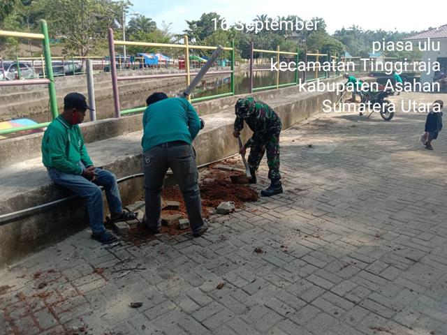 Asahan | Kegiatan Gotong-royong ini merupakan tugas pokok Babinsa mengajak masyarakat untuk menjaga kebersihan lingkungan dan juga ajang silaturrahmi antara aparat dengan warga Binaanya sudah sepatutnya kita sama menjaga kebersihan ini, dalam hal ini Personel Bintara Pembina Desa (Babinsa) Koramil 13/Buntu Pane jajaran Kodim 0208/Asahan Serda Sagala dan 2 anggota Babinsa beserta Masyarakat Desa Piasa Ulu turut serta melaksanakan kegiatan Gotong royong pembersihan dan perbaikan jalan desa di dusun 3 desa Piasa ulu kecamatan Tinggi raja di lokasi jalan desa agar jalan yang sudah dibangun terawat dan bertahan lama jalan desa ini bersama dengan Kades Piasa Ulu Bapak Imam Agustinus, Kadus 3 Sei Kapak Bapak Sutarman dan Masarakat Dusun 3 Desa Piasa Ulu, kegiatan tersebut yang dilaksanakan terletak di Dusun 3 Sei Kampak Desa Piasa Ulu Kecamatan Tinggi Raja Kabupaten Asahan, Kamis (16/09/2021).