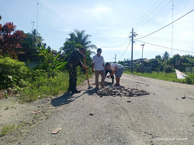 Simalungun | Hal ini menyebabkan masyarakat sangat antusias dalam setiap suatu kegiatan karena Babinsa selalu ada ditengah-tengah mereka sehingga diharapkan jalinan kerjasama tersebut putus dan terus menerus dapat terjalin dengan baik, dalam hal ini seperti yang dilakukan oleh Personel Bintara Pembina Desa (Babinsa) Koramil 20/Raya Kahean jajaran Kodim 0207/Simalungun Koptu JR Purba serta Masyarakat Nagori Sambosar Raya Kecamatan Raya Kahean Kabupaten Simalungun turut serta melaksanakan kegiatan Marharoan Bolon serta Perbaiki Jalan yang berlobang, kegiatan tersebut yang dilaksanakan bertempat di Nagori Sambosar Raya Kecamatan Raya Kahean Kabupaten Simalungun, Senin (06/06/2022).