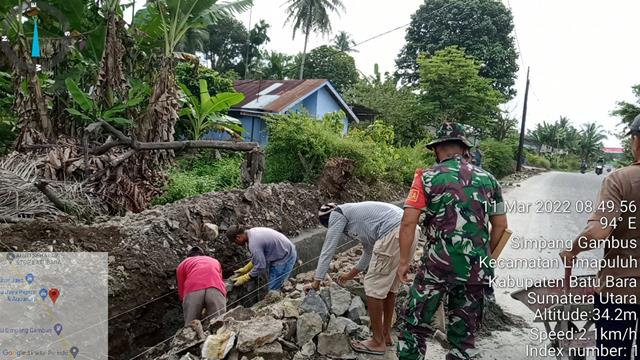 Dalam hal ini seperti yang dilakukan oleh Personel Bintara Pembina Desa (Babinsa) Koramil 03/Lima Puluh jajaran Kodim 0208/Asahan Serda Sutikno turun kewilayah binaan untuk melaksanakan kegiatan Gotong Royong bersama masyarakat Desa Simpang Gambus membersihkan Parit dan melanjutkan pembangunan parit di pinggir jalan protocol yang turut serta dihadiri oleh Kades bapak Idris dan Masyarakat Desa Simpang Gambus, kegiatan tersebut yang dilaksanakan bertempat di Desa Simpang Gambus Kecamatan Lima Puluh Kabupaten Batu Bara, Jumat (11/03/2022).