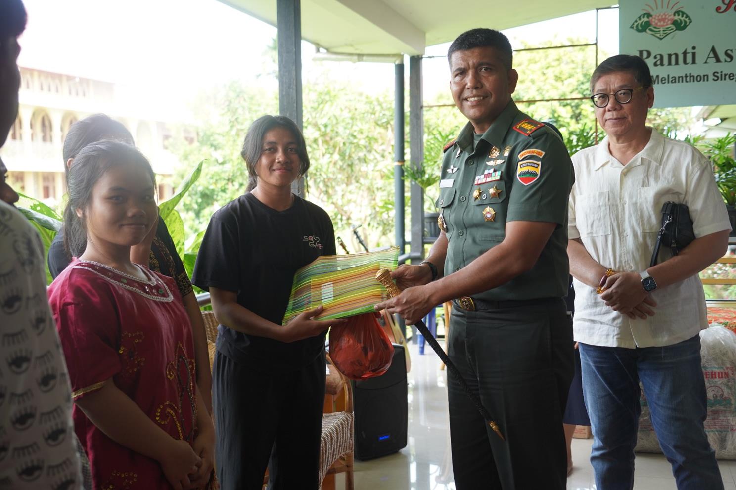 Pematang Siantar – Komandan Korem 022/Pantai Timur Kolonel Inf Agustatius Sitepu, S.Sos. M.SI., M.Han., didampingi Ketua Persit KCK Koorcabrem 022 PD I/BB Ny. Esther Agustatius Sitepu melaksanakan Bantuan Sosial Pemberian sembako kepada anak-anak Disabilitas yang berada di Yayasan Panti Asuhan Bhakti luhur , Yayasan Panti Asuhan BKM GKPS, Yayasan Panti Asuhan Vita Dulcedo serta Yayasan Panti Asuhan Harapan Jaya yang berada disekitar Wilayah Korem 022/PT. Senin (18/12/2023).