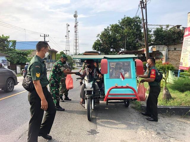 Menindaklanjuti himbauan Dandim 0208/AS Letkol. Inf. Franki Susanto, SE. kepada seluruh jajarannya agar berlomba meningkatkan kebaikan selama bulan suci Ramadhan, Danramil 03/LP melaksanakan berbagi ta’jil gratis menjelang waktu berbuka puasa kepada masyarakat yang melintas. Dalam kegiatan berbagi takjil gratis tersebut sejumlah pengendara motor nampaknya cukup antusias menerima takjil pemberian dari Danramil bersama anggota untuk berbuka. Ada sekitar 100 takjil gratis yang diberikan terhadap masyarakat atau pengendara motor saat melewati jalan tersebut.