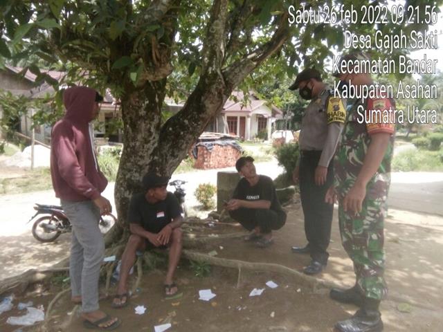 Asahan  |  Pentingnya peran para pemuda dalam menciptakan keamanan dan ketertiban masyarakat, untuk itu para pemuda di desa sebaiknya membentuk karang taruna agar dapat mengarahkan mereka pada hal-hal yang positif, dalam rangka untuk mencegah kenakalan remaja di kalangan masyarakat diwilayah binaan, dalam hal ini seperti yang dilakukan oleh Personel Bintara Pembina Desa (Babinsa) Koramil 15/Bandar Pulau jajaran Kodim 0208/Asahan Kopda Sutopo turun kewilayah binaan untuk melaksanakan kegiatan Komunikasi Sosial (Komsos) bersama dengan Brigadir Heri Siahaan (Anggota polsek Bandar Pulo) dan beberapa remaja warga binaan, adapun pada kesempatan ini saya bersama Brigadir Heri Siahaan (Anggota Polsek Bandar Pulo) menyampaikan dan memberikan beberapa arahan ataupun nasehat, agar jangan terjerumus dalam penggunaan alat komunikasi (Henpon genggam), serta pergaulan bebas dan pandai menjaga diri supaya terhidar dari bahayanya Narkoba, kegiatan tersebut yang dilaksanakan tepatnya di Dusun Dua Desa Gajah Sakti Kecamatan Bandar Pulau Kabupaten Asahan, Sabtu (26/02/2022).
