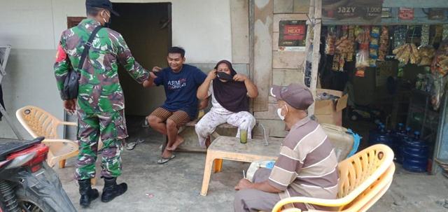 “Patuhi protokol kesehatan dengan melakukan 5M ” ujar Babinsa.