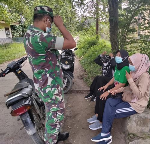 Simalungun  |  Guna untuk memutus mata rantai penyebaran Virus Covid 19 di wilayah Binaan, supaya warga masyarakat yang berpergian keluar rumah tetap memakai masker dan mengatur jarak selalu menjalankan Protokol Kesehatan maka dengan itu, Personel Bintara Pembina Desa (Babinsa) Koramil 05/Serbelawan jajaran Kodim 0207/Simalungun Serda Suriyaji turun kewilayah binaan untuk melaksanakan kegiatan Komsos/PPKM bersama masyarakat dengan menghimbau kepada warga terkait tentang Protokol Kesehatan agar selalu mematuhi anjuran pemerintah dengan Memakai masker, Menjaga jarak, Menghindari kerumunan dan Mengurangi mobilitas guna mencegah penyebaran virus Covid-19, kegiatan tersebut yang dilaksanakan bertempat di Serbalawan Kecamatan Dolok Batunanggar Kabupaten Simalungun, Minggu (29/05/2022).