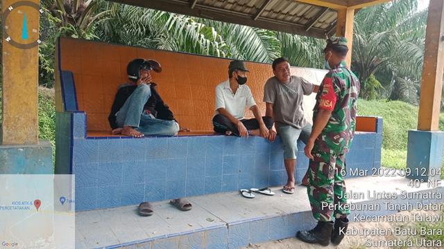 Batu Bara | Pemberlakuan Pembatasan Kegiatan Masyarakat berbasis Mikro (PPKM Mikro) yang berada di tiap desa menjadi salah satu upaya Pemerintah dalam mencegah penyebaran virus Covid-19 dari tingkat bawah, seprti yang dilakukan oleh Personel Bintara Pembina Desa (Babinsa) Koramil 04/Talawi jajaran Kodim 0208/Asahan Serda Suherman turun kewilayah binaan untuk melaksanakan kegiatan Pengawasan Protokol Kesehatan Covid-19 kepada masyarakat dalam rangka dengan memberikan pemahaman New Normal yaitu menggunakan masker setiap keluar rumah, cuci tangan pakai sabun, menjaga jarak dan membagikan masker guna memutuskan mata rantai penyebaran Virus Covid-19, kegiatan tersebut yang dilaksanakan bertempat di Dusun lV Desa Perk. Tanah Datar Kecamatan Datuk Tanah Datar Kabupaten Batu Bara, Rabu (16/03/2022).