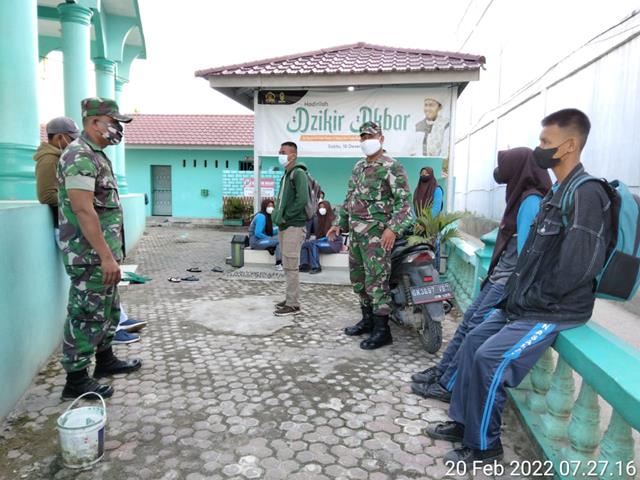 Asahan | Tak ingin warga anak-anak terpapar Virus Corona, maka Personil Koramil 16/Pulau Rakyat, Babinsa Serka Syahrul dan Serda Yusin Ritonga melaksanakan himbauan kepada para Siswa – Siswi MA N 2 agar selalu mematuhi Protokol Kesehatan antara lain memakai Masker, menjaga jarak dan mencuci tangan bertempat di Dusun 2, Desa Pulau Rakyat Tua, Kecamatan Pulau Rakyat, Kabupaten Asahan, Minggu (20/02/2022).