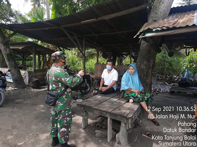 Tanjung Balai  |  Guna untuk memutus mata rantai penyebaran Virus Covid 19 di wilayah Binaan yang dilaksanakan diwilayah binaan, Personel bintara Pembina Desa (Babinsa) Koramil 17/Datuk Bandar jajaran Kodim 0208/Asahan Serda Abdul Hamid