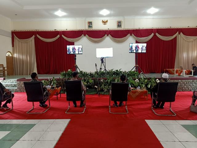 Pematang Siantar | Komandan Kodim (Dandim) 0207/Simalungun Letkol Inf Rolly Souhoka, S.I.P, turut serta menghadiri Live Zoom bersama Panglima TNI Marsekal Hadi Tjahjanto dan Kapolri Jendral Polisi Drs Listyo Prabowo Sigit MSI dalam rangka pelaksanaan kegiatan Gerai Vaksinasi Massal Presisi Polri, kegiatan tersebut yang dilaksanakan bertempat di Gedung MUI Jalan Asahan KM 4 Kecamatan Siantar Kabupaten Simalungun, Jumat (17/09/2021).