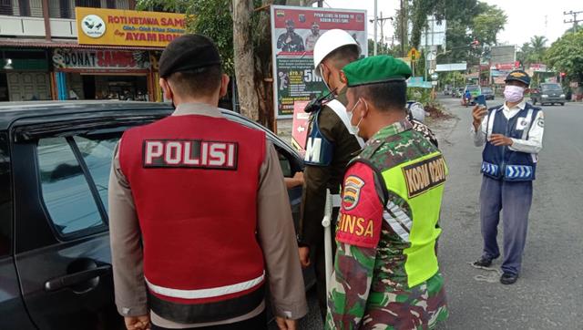 Dalam Rangka PPKM Mikro Covid-19, Personel Jajaran Kodim 0207/Simalungun Laksanakan Posko Pasar bersama Forkopimca