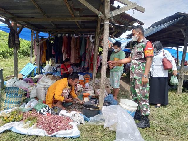 Simalungun | Tugas dan tanggung jawab sebagai aparat teritorial kewilayahan harus selalu memonitor dan memantau kondisi wilayahnya. Seperti yang dilakukan oleh Personel Bintara Pembina Desa (Babinsa) Koramil 17/Sidamanik jajaran Kodim 0207/Simalungun Serda Dirman R Simangunsong turun kewilayah desa binaan untuk melaksanakan kegiatan Sosialisasi Penanganan Virus Covid-19 serta melakukan Penegakan Disiplin Protokol Kesehatan diwilayah binaan dengan memberikan himbauan kepada masyarakat agar tetap memakai masker dan mencuci tangan utk mencegah penyebaran Virus Covid-19, kegiatan tersebut yang dilaskanakan bertempat di Pekan Selasa Nagori Manik Maraja Kecamatan Pematang Sidamanik Kabupaten Simalungun, Selasa (15/03/2022).