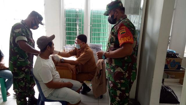 Asahan | Program Vaksinasi Covid-19 di wilayah Kabupaten Asahan telah berjalan di berbagai faskes, kelurahan maupun Desa setempat dengan sasaran masyarakat di wilayah tersebut, guna untuk dalam rangka mensukseskan program Vaksinasi Nasional, dalam kesempatan kali ini Personel Bintara Pembina Desa (Babinsa) Koramil 07/Air Joman jajaran Kodim 0208/Asahan Serma Hendrayatno, Serda A. H. Barus, Serma Syahrul Warta Wijaya dan Serda Erwinsyah turun kewilayah desa binaan dalam rangka untuk melakukan pendampingan dan memantau kegiatan Vaksinasi Covid-19 (Vaksin TNI, Polri dan Dinkes) Dosis-I, II dan III untuk anak, Lansia dan masyarakat umum di wilayah Koramil 07/Air Joman, kegiatan tersebut yang dilaksanakan berada di dua tempat diantaranya adalah Puskesmas Binjai Serbangan Jalan Protokol Kelurahan Binjai Serbangan Kecamatan Air Joman dan Balai Desa Silo Baru Kecamatan Silau Laut Kabupaten Asahan, Selasa (05/04/2022).
