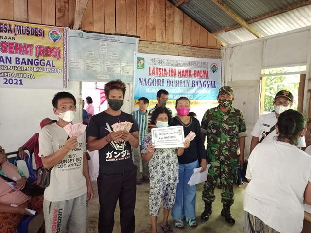 Simalungun | dengan keberadaan kami untuk memantau dan melaksanakan pengamanan penyaluran BLT-DD, diharapkan masyarakat penerima bantuan akan lebih tertib dalam antrian dengan mentaati protokol kesehatan. Dalam hal ini seperti yang dilakukan oleh Personel Bintara Pembina Desa (Babinsa) Koramil 20/Raya Kahaen jajaran Kodim 0207/Simalungun Serma Irfan Mawardi turun kewilayah binaan untuk melaksanakan kegiatan Pendampingan Penyaluran Bantuan Langsung Tunai (BLT) yg bersumber dari Dana Desa Kepada Masyarakat Nagori Durian Bagal berjumlah 95 orang, kegiatan tersebut yang dilaksanakan bertempat di Kantor Kepala Desa Nagori Durian Bagal Kecamatan Raya Kahean Kabupaten Simalungun, Rabu (27/04/2022).