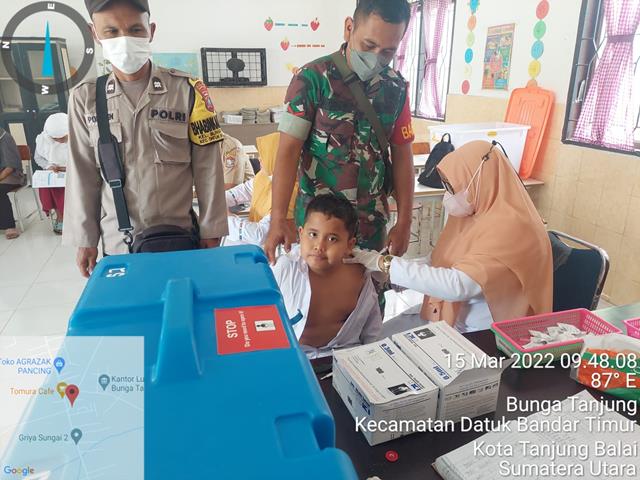 Pada kesempatan ini dengan melihat warga kami yang sangat antusias untuk melaksanakan vaksinasi ini, terpenting adalah vaksin ini untuk meningkatkan imunitas tubuh dan bisa menjaga kekebalan tubuh dari virus Covid-19 serta kegiatan pagi ini tetap kita taati protokol kesehatan, dalam hal ini seperti halnya yang dilakukan oleh Personel Bintara Pembina Desa (Babinsa) Koramil 17/Tanjung Balai jajaran Kodim 0208/Asahan Kopda Agus Nuryaddin turun kewilayah binaan untuk turut serta melaksanakan Pendampingan Serbuan Vaksinasi Covid-19 untuk anak usia 6 S/D 11 Tahun, kegiatan tersebut yang dilaksanakan bertempat di SD Negeri 138436 Jalan AMD Lingkungan IV Kelurahan Bunga Tanjung Kecamatan Datuk Bandar Timur Kota Tanjung Balai, Selasa (15/03/2022).