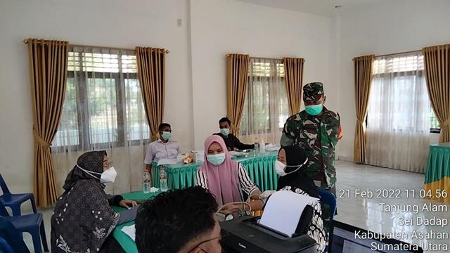 Asahan | Personel BIntara Pembina Desa (Babinsa) Koramil 12/Air Batu jajaran Kodim 0208/Asahan Sertu Awaluddin Lubis turut serta melaksanakan kegiatan pendampingan Vaksinasi Covid 19 kepada masyarakat, kegiatan tersebut yang dilaksanakan bertempat di Kantor Desa Pulau Pule Kecamatan Air Batu Kabupaten Asahan, Senin (21/02/2022).