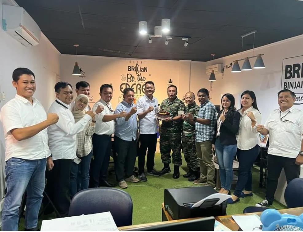 Dandim Langkat Letkol Inf Muhammad Eko Prasetyo memberikan kue ulang tahun sebagai tanda apresiasi Kodim 0203/Langkat  kepada Pimpinan Cabang BRI Binjai, sebagai salah satu mitra TNI kepada kepala cabang BRI Binjai Bapak Agung.