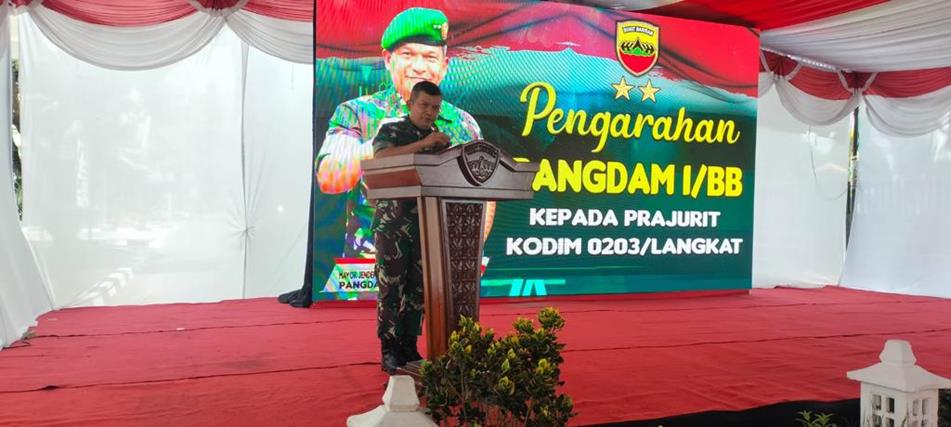 Dalam sambutannya Pangdam I/BB menyampaikan bahwa kunjungan yang dilaksanakan hari ini dimanfaatkan untuk bertatap muka dan bersilaturahmi dengan para keluarga besar Kodim 0203/Lkt sehingga bisa mengetahui kondisi yang dialami satuan lebih dekat lagi.