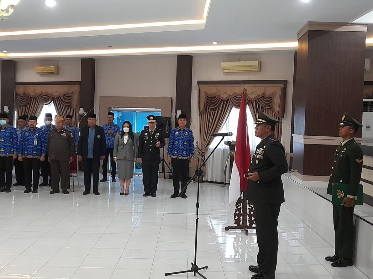 Langkat – Dandim 0203/Langkat Letkol Inf. Muhammad  Eko Prasetyo sebagai Inspektur upacara memperingati hari Pahlawan nasional tahun 2022 bertempat di Ruang Pola Pemkab. Langkat, Jln. Tengku Amir Hamzah Kel. Kwala Bingai Kec. Stabat  Kab. Langkat.Kamis (10/11/2022).