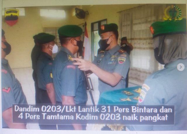 Dalam sambutannya, Komandan Kodim 0203/Lkt menyampaikan bahwa Kenaikan pangkat pada hakikatnya merupakan penghargaan yg diberikan oleh negara atas prestasi dedikasi dalam melaksanakan tugas pengabdian sesuai tanggungjawab jabatan juga merupakan kehormatan bagi prajurit.
